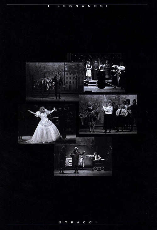 I LEGNANESI di Dante Barlocco presentano: Stracci (1997) Due tempi di Alvaro Testa Interpreti principali: Mario Lino, Rino Maraschi, Angelo Mortarino, Giuseppe Parini, Libero Galimberti, Danilo Parini, Giovanni Mercuri, Maurizio Albé, Mauro Ciapparelli – I Boys della Compagnia Musiche: Paki Capitale Coreografie: Elena Zannin Scene e Costumi: Angelo Poli Regia: Alvaro Testa Fotografie di…